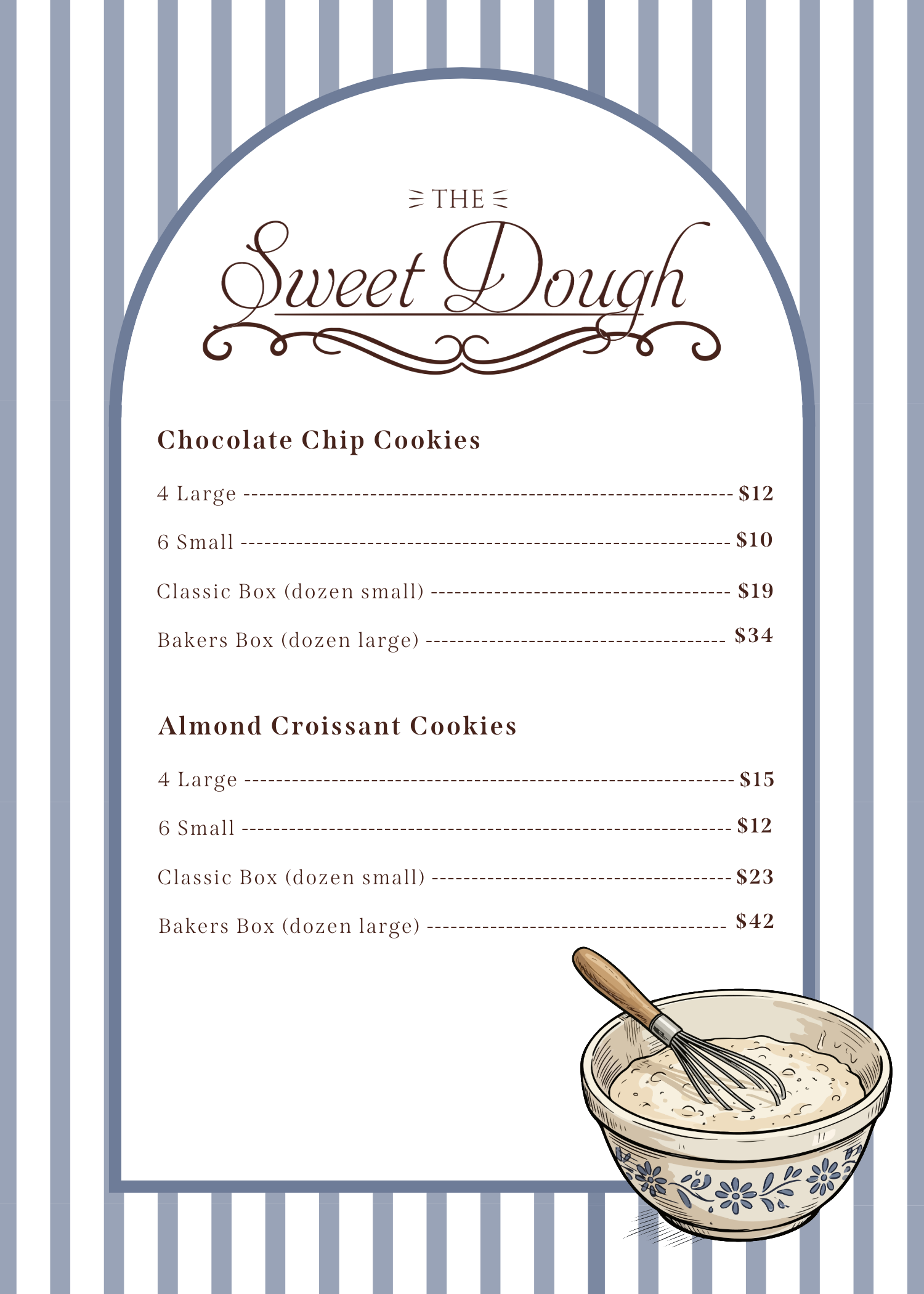 Welcome to The Sweet Dough, where every batch feels like home. We are an at-home bakery that proudly serves classic desserts to the Inland Empire.